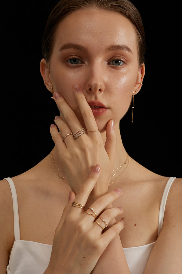 Our fine 14k solid gold ring, with six equidistant diamonds, accurately captures Pey's role in her sibling ecosystem. Just like her five siblings, she's their equal.